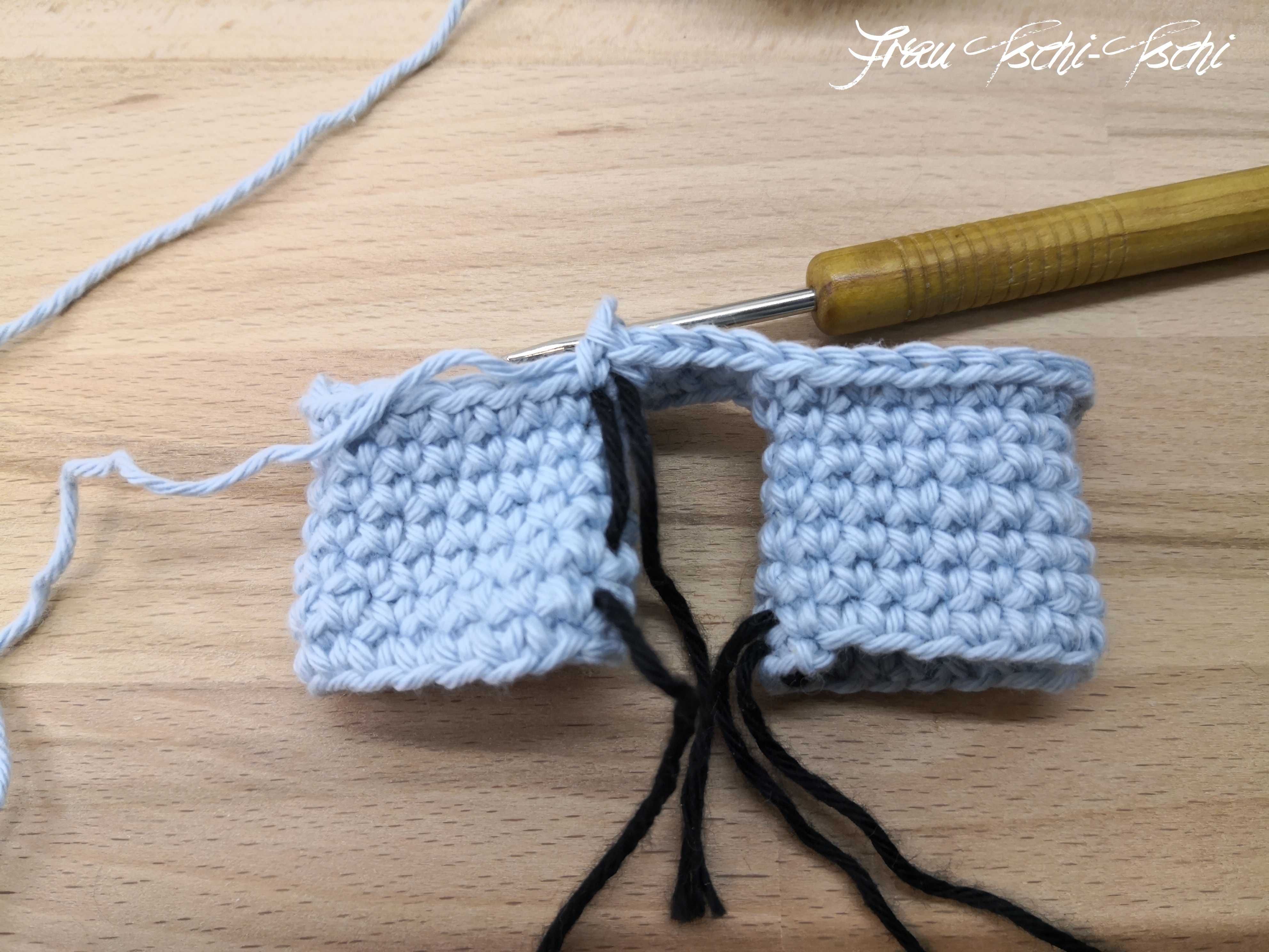 Falls nicht, bitte anpassen … also die entsprechenden Maschen noch häkeln oder die nötigen Maschen aufribbeln …