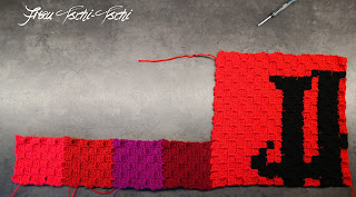 Es werden immer im Wechsel 2 Reihen pro aktueller Farbe gehäkelt.
